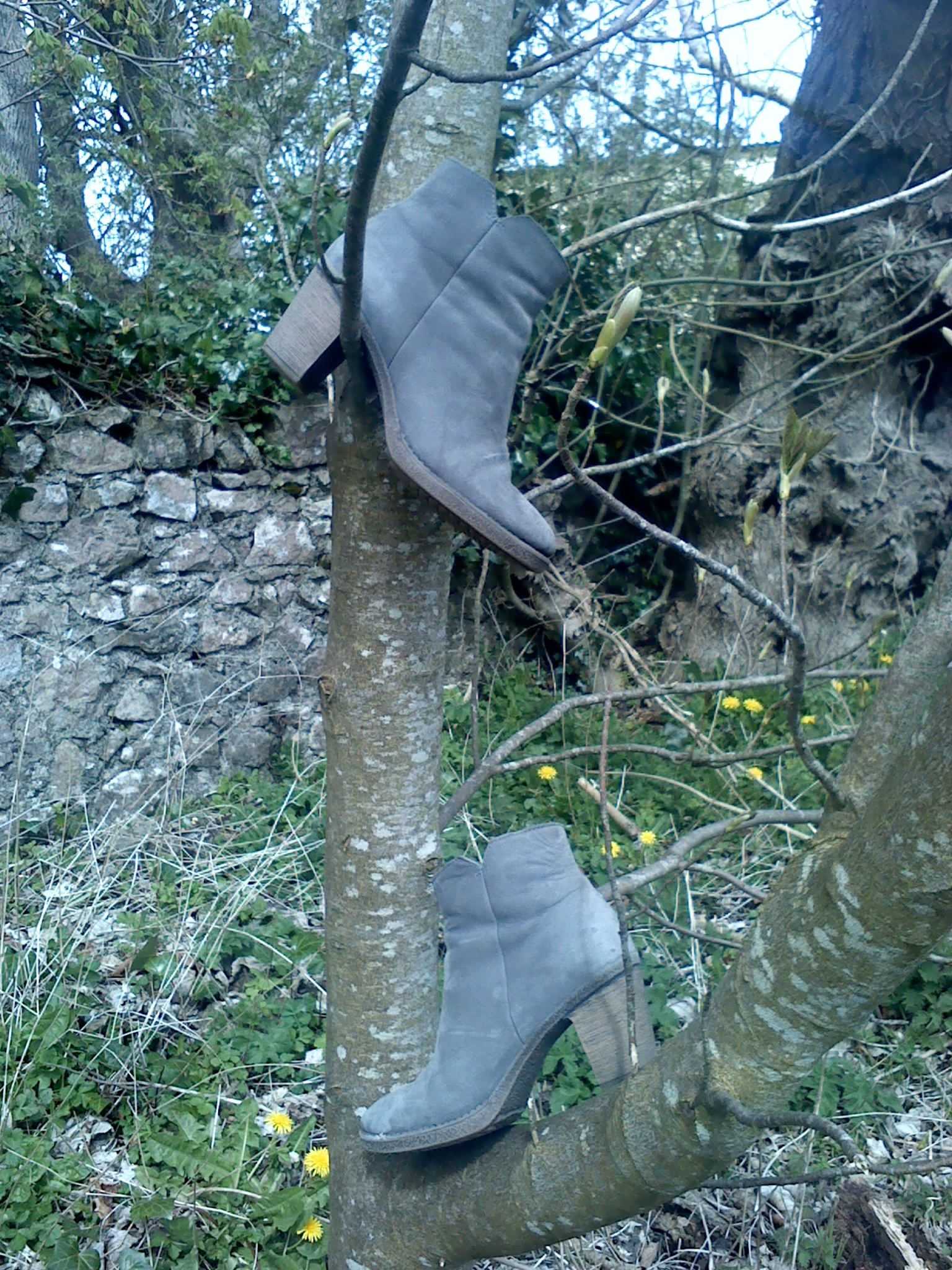 Anyway, the reason for that inspiring wander down memory lane is that I was wandering around town not too long ago in search of another piece of footwear – a good ankle boot to take me from winter to spring and beyond. I’m not always inclined to go into the local independent shoe shops, solely for that fact that they can sometimes be beyond my paltry budget, and I know that sometimes they can also be overlooked by the unfair assumption that they might be a bit old-womany, but I ventured into one called Pat Lanes, in Tuam, Co. Galway and picked up a great pair for €50 (in the sale) which I’ve been wearing consistently for about 3 months now, and they’ve held up really well (when I first got them I put them on immediately and wore them every day for two weeks, which is what I tend to do when I buy something new).