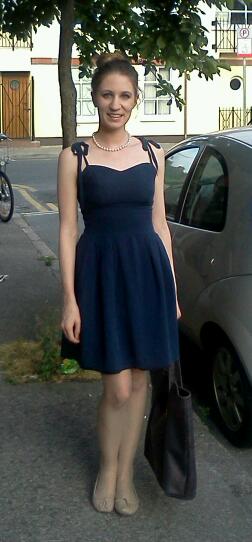 Anyway, the point of this post is to promote the power of plain. I find that ‘model uniform’ of jeans and simple top so appealing, it’s stripped back but also chic. I see these simple pieces as being the foundation of an outfit. I have transformed my jeans and black top combo umpteen times by wearing different pieces of jewellery, scarves and shoes and using different bags. I bought the navy dress you see me in in Carousel, a lovely independent clothing and accessories shop on Exchequer Street. I love it’s simplicity and I love that it’s sunny and warm and so I get to wear it! It’s the perfect dress to take me from day to night.