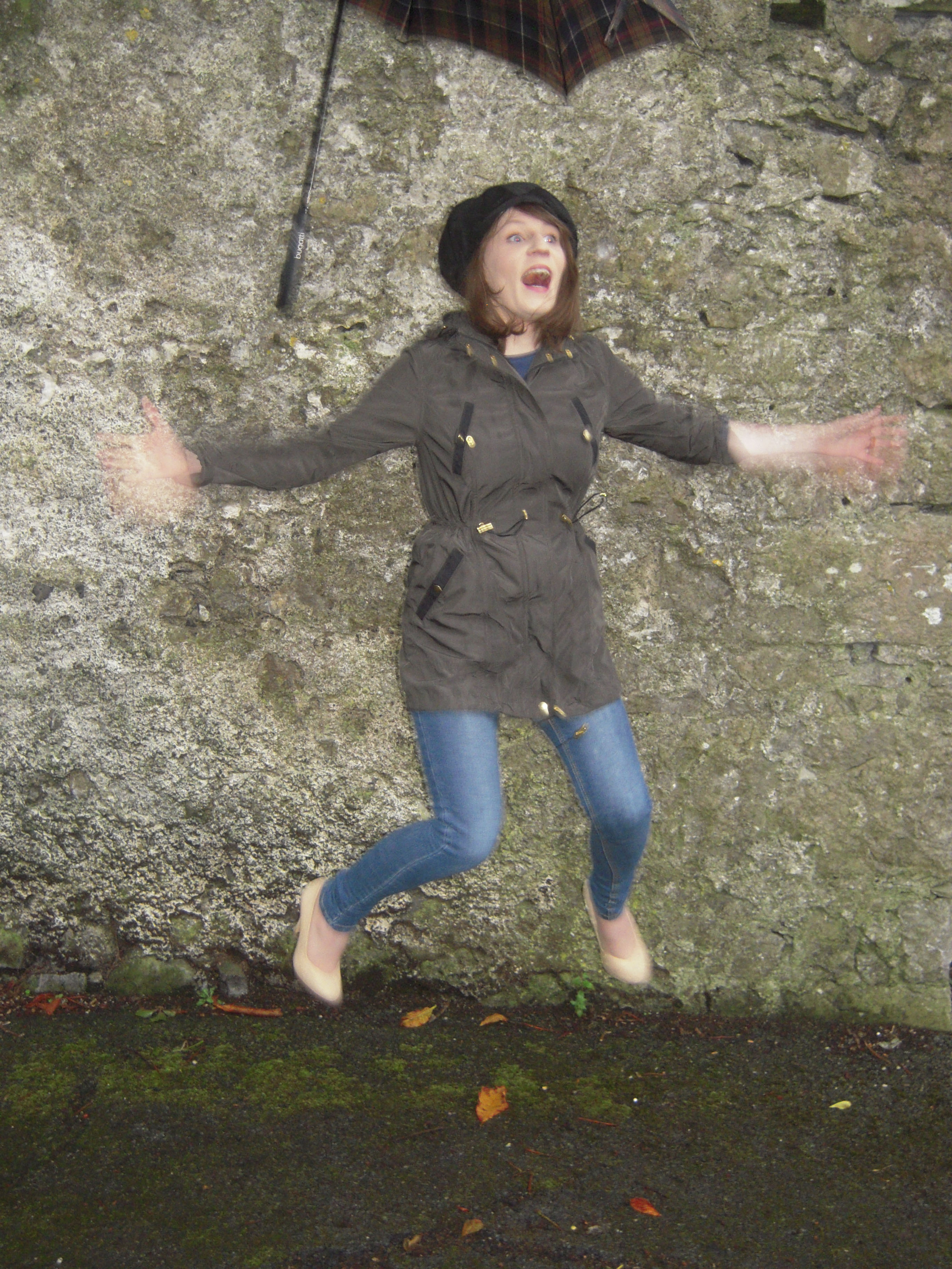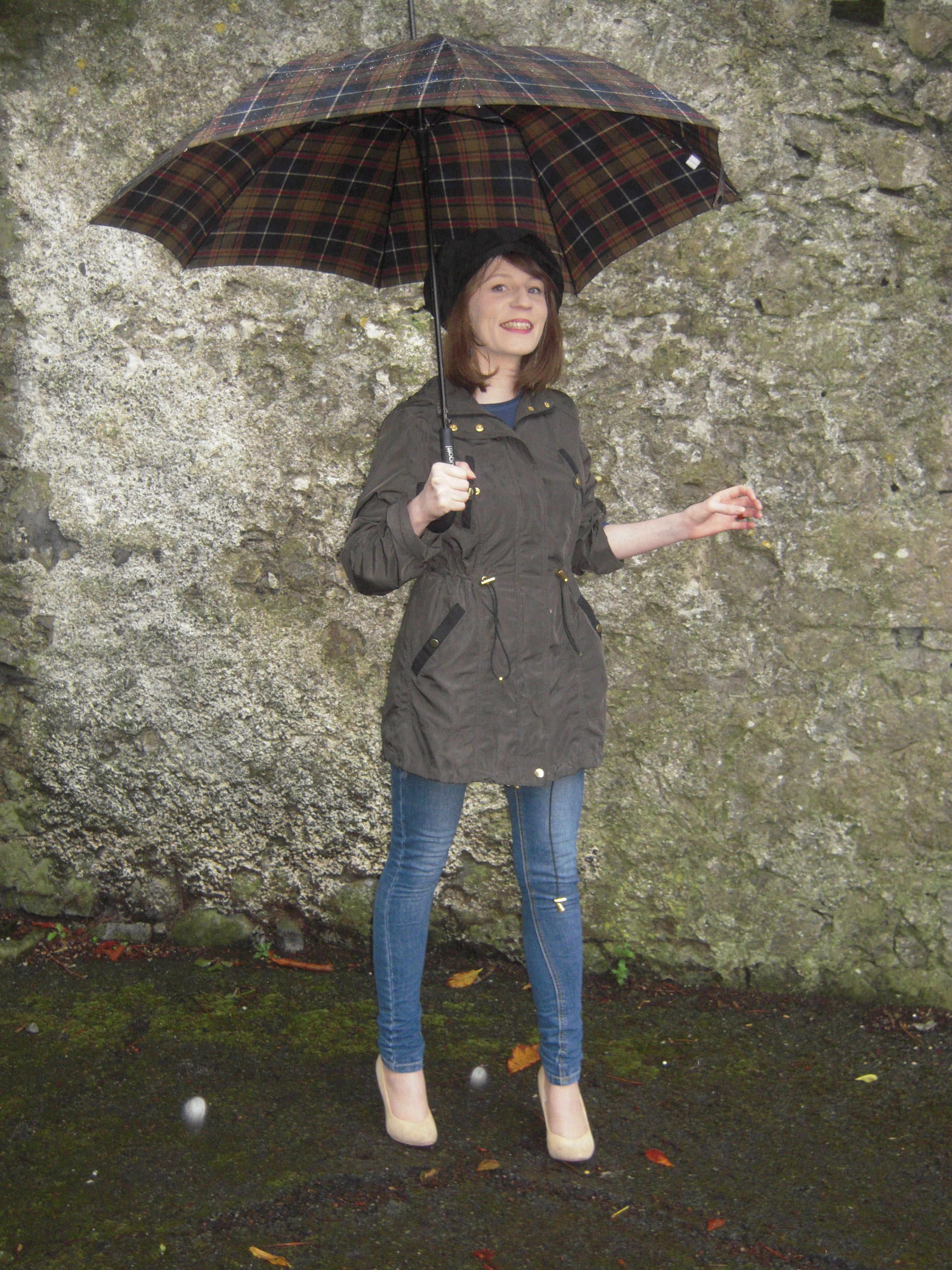 So for outfit number 3 I forwent the Ladies Day brief. A pair of jeans (another charity shop find, €3!), shoes I didn’t mind getting scuffed, stood on, ruined, plain navy top (made a little more dressy with a silky texture) and most importantly waterproof jacket and umbrella would take me smuggly around Ballybrit and beyond. The coat has many pockets so a bag isn’t even strictly needed, a cute little clutch could be added later on if needed. I could just imagine myself hopping excitedly and jumping for joy when my horse came in. Because isn’t that what the races is actually all about? Apart from the champagne tents, celebrity spotting and day off work that is. Hmm, maybe I will go next year, my hat does deserve an outing…