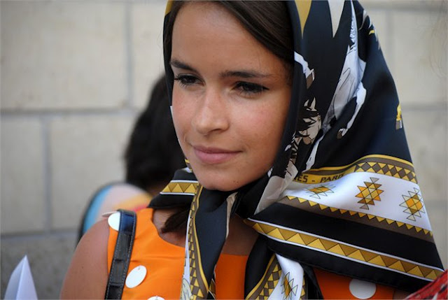 Miroslava Duma a.k.a. Mira Duma is a Russian socialite and fashion editor who has embraced scarves like Imelda Marcos embraced shoes. Now I don’t want to open up any Cold War-esque conversations but – well let’s just say there is a suspicious similarity between how Mira wears scarves and how my grandmother used to…