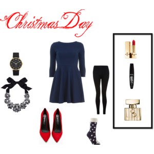 Each family has their own Christmas Day tradition, but most here in Ireland will inevitably either visit or pay host to relatives. This ensemble is again quite low maintenance; a navy dress with red pumps and a bit of sparkle is lovely for a bit of Mass (happy birthday Jesus!) followed by a stop by auntie’s house. Once home you could pull on a pair of black tights or leggings and those adorable slipper socks and still wouldn’t be mortified if anyone unexpected called to the door. A watch is essential if you’re contributing in any way to the cooking process, and a slick of pillarbox red lippy, a dash of mascara and a spritz of fragrance will distract anyone from noticing any panic about over-cooked turkey on your face. And will look really good in photos.