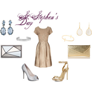 For many of us St. Stephen’s Day (or Boxing Day) is one for catching up with friends home for the holidays in the sweaty confines of an over crowded pub. Nevertheless it’s always fun, and a great opportunity to get your glad rags out. Not as sparkly as New Year’s Eve but not as safe as your work party, a nice touch of glamour never goes astray, particularly if you’re starting off the night with a few drinks in the home of a friend, surrounded by a bevy of well-dressed beauties, like I will be. I love this blush-gold dress – with a hind of sparkle in the bodice it can really be allowed to speak for itself. Hair up or down, a nice pair of danglies is essential, and you can forgo a necklace in favour of a delicate bangle. A little clutch is definitely a must, as is a pair of heels. Gold is a really nice, if not a bit obvious way to go; I think a hint of silvery blue looks quite unexpected and adds a touch of understated edge to the look and would favour the ensemble on the left.