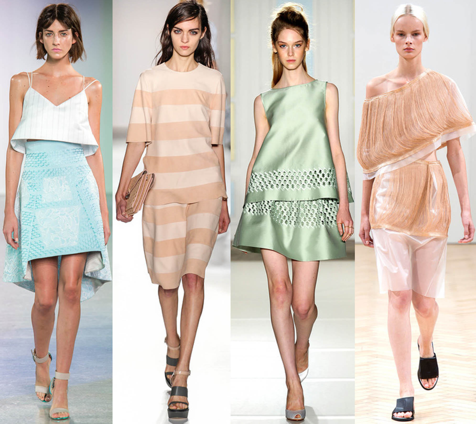 That’s right, pastels! While pastel colours have always reminded me of early 1990s bridesmaid dresses (and my debs dress, but that’s another story) they are big news this spring. Seen all over the the catwalk from DKNY to Richard Nicholl, the lighter shades were a breath of fresh air among prints and block colour. Pastels can be incorporated into other trends too – they look great on pleated skirts – in fact, CM rocks a lilac number of our Nana’s – and are confusingly sexy/ladylike on sheer. Laura Ashley it ain’t.