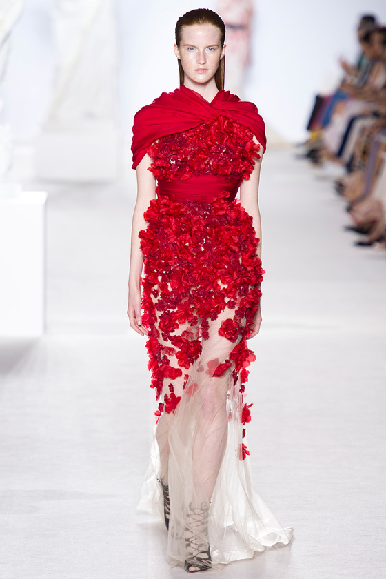 Lawrence was last year’s Best Actress winner so as well as going for another gong she’ll be on presenting duties for Best Actor. This may well be a clincher in the deciding factor, and she may throw a curveball and depart from the big flouncy frocks she went for at last year’s ceremony and this year’s Golden Globes, in which she was adorned in Dior W/W13 Couture. Dior is her go-to, being a spokesmodel for the brand, but I’d love to see her in something like this Giambattista Valli A/W13 dress. It would be unexpected and striking, and I think would look amazing with her cute blonde pixie crop.