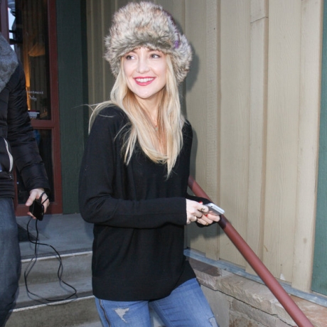 I liked this Kate Hudson look. It’s very simple but made smart with her fuzzball of a hat and slick of bright lippy. She could be wearing any type of shoe with those jeans, high or low-heeled, and the outfit would more than likely still look good. I’m imagining sturdy boots, hopefully not with fur because that would be too much but she could change into a pair of any colour pumps later which would more than adequately take her from day to night.