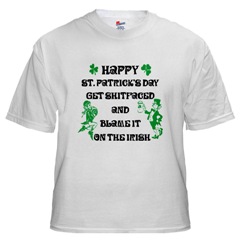 I came across the one below on sale on Ebay and whimpered in frustration. It’s highly unlikely that any of the above, or the (and I use this word as little as possible) offensive t-shirt modelled by the child below will be worn in Ireland. As much as we like to bolster the “we’re great craic altogether aren’t we, we can drink ye all under the table and then sing Danny Boy at the top of our lungs” image, we do get a little bit defensive when non-Irish people take that as “ah look at the poor stupid drunken idiots, they are great craic but while being Irish is great for a visit I wouldn’t want to stay there”.
