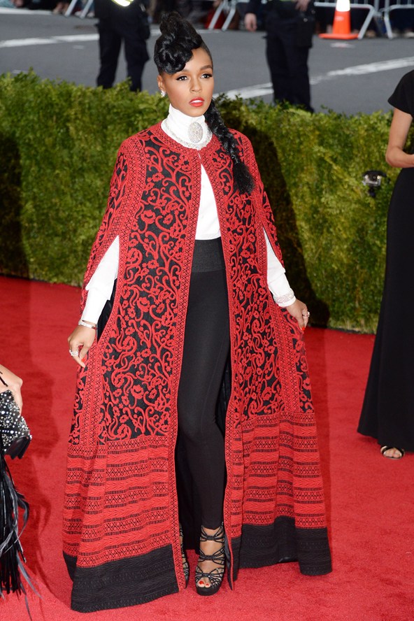 Apart from the yukky shoes I was very taken with Janelle’s cool take on the theme. While not the only one forgoing a dress for trousers the addition of this intricately detailed cloak and crisp white shirt with brooch gives such her such a regal and no nonsense edge that, just like the courtiers of old adopting a trendy lisp in emulation of their prince we’ll be rushing out to copy the look come autumn.