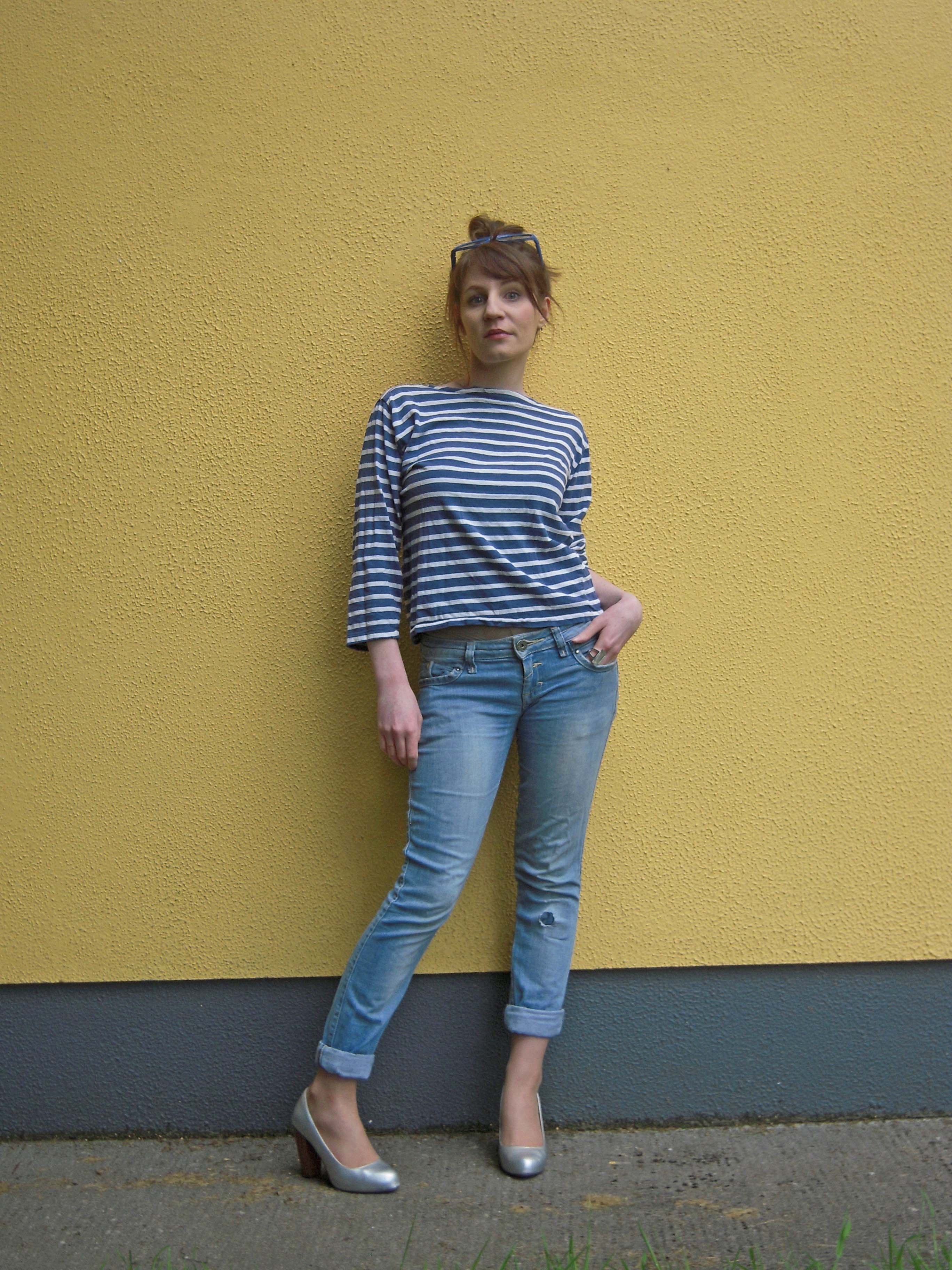 Have you ever gone wrong with a Breton top and a pair of baby blue denims? Add a pair of silver heels (another trend to give a go) and a pair of blue framed sunglasses (or in my case 3D glasses from the cinema last weekend!) for a pleasant stroll on the Galway Prom armed with a 99 or a wistful afternoon in a cafe with a coffee or five.