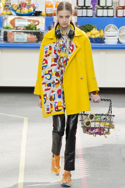 Chanel’s SS14 collection also leaned towards a white base with splashes of colour, though they’re a little more uniform, not unlike a test sheet or Pantone colour card. In his AW14 show Karl send the models down supermarket aisles, bringing the nod to art and Warhol full circle in a way.