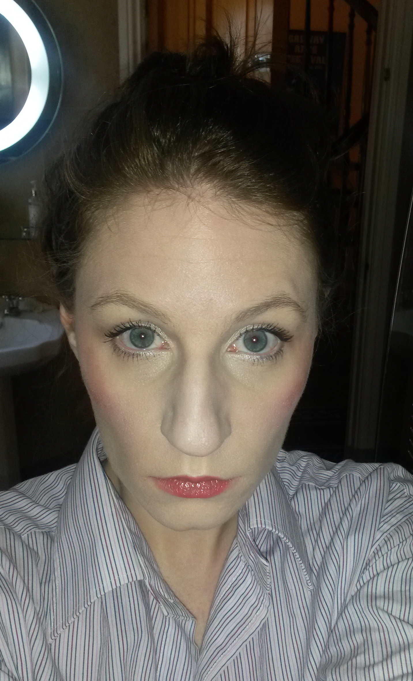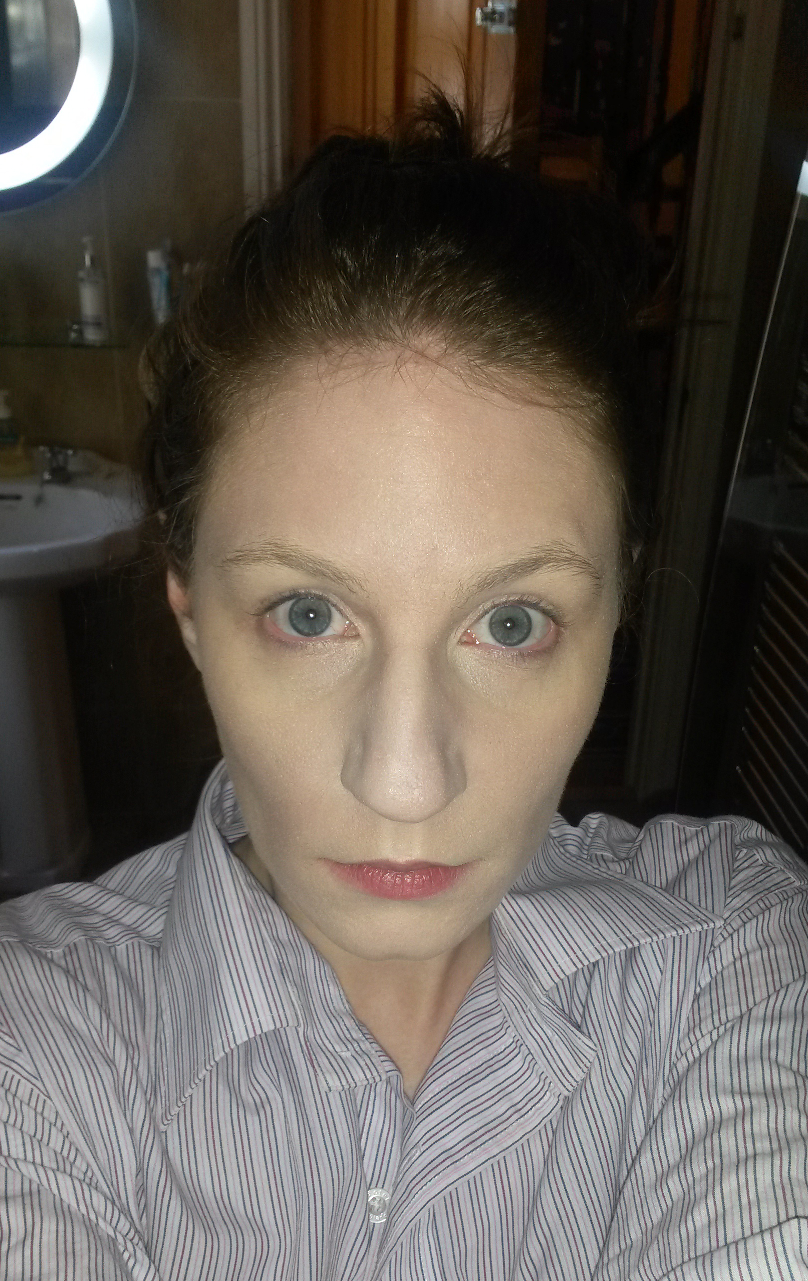I’m somewhat reluctant to deviate from my foundation choice – once I’ve found one that works I stick with it, being prone to reactions and breakouts. My current fave is cheap as chips Catrice mousse, and I truly love it. It’s so easy to blend, has a light fluffy feel and lasts a surprisingly long time for the size of its little pot and competitive price point. But even its lightest shade is still a little off – it’s fine when I have a little tan on (rarely), but is just a touch too dark for every day. So I was excited to see on the jawline test that the Skin Luminizer matched my skin tone perfectly. Really – perfectly. So far, so good.