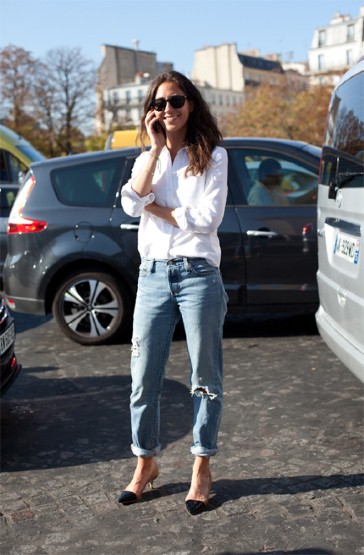 I often wear a look similar to this to work. It’s so easy to do, looks smart yet put-together and is comfortable. I have a pair of ancient (dare I admit it?) boot-leg jeans that have a hole at one of the knees and the material has gone all soft – and the softer the better – but they are perfect for this look. I roll them up haphazardly, add a shirt or, these days, a jumper, pop on my low heels and there you have it!