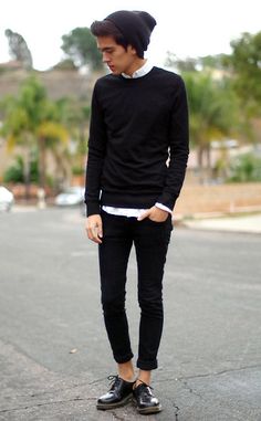 Following your night out you’ll want something simple and easy to pull together (do it before you go to bed!). Or just pull that white shirt from Tuesday out of the wash basket and pop a skinny knit over it; ta-da! Pull a beanie over your hair or stick it up in a bun and finish with docs or brogues. Yes, it’s a gent in the pic above, and he has it down; I’d totally wear that!