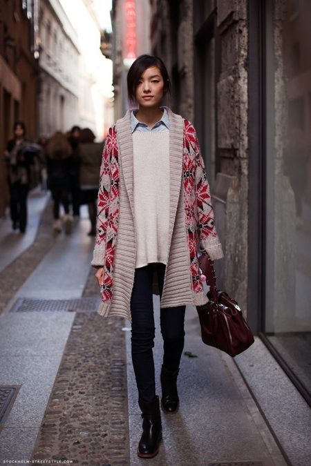 There was, and still is, a big love of long cosy cardigans, particularly around Uni students, which can be a warm but tricky one to get right. Luckily we have Olivia Palermo on hand to show us how it’s done.