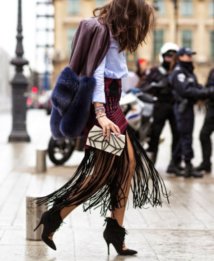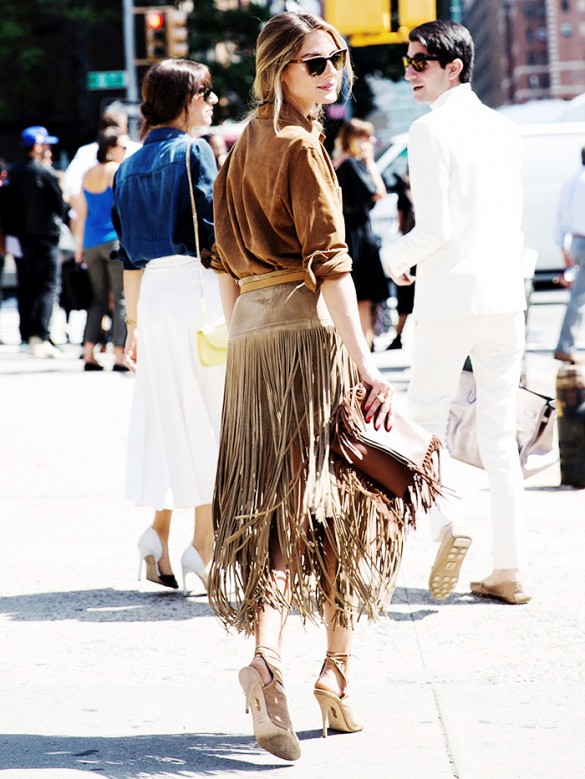This was seen in abundance in New York this month, unsurprisingly given its all- American pegdigree. And why look, it’s Olivia again! Some might say I have a little girl crush on her (who can resist that lovely hair goddamit?!). But see how she works fringing without coming across all cowgirl? The average laydee would be better off sticking to either skirt or bag, and the more reasonable would just choose bag – but see how swish!