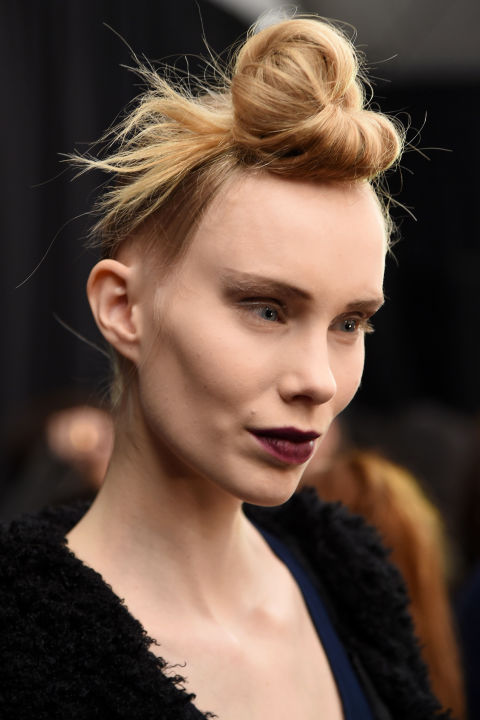 Marc Jacobs sent his models down the runway with a similar hair style, the bun right at the very centre of the forehead with the ends left loose.