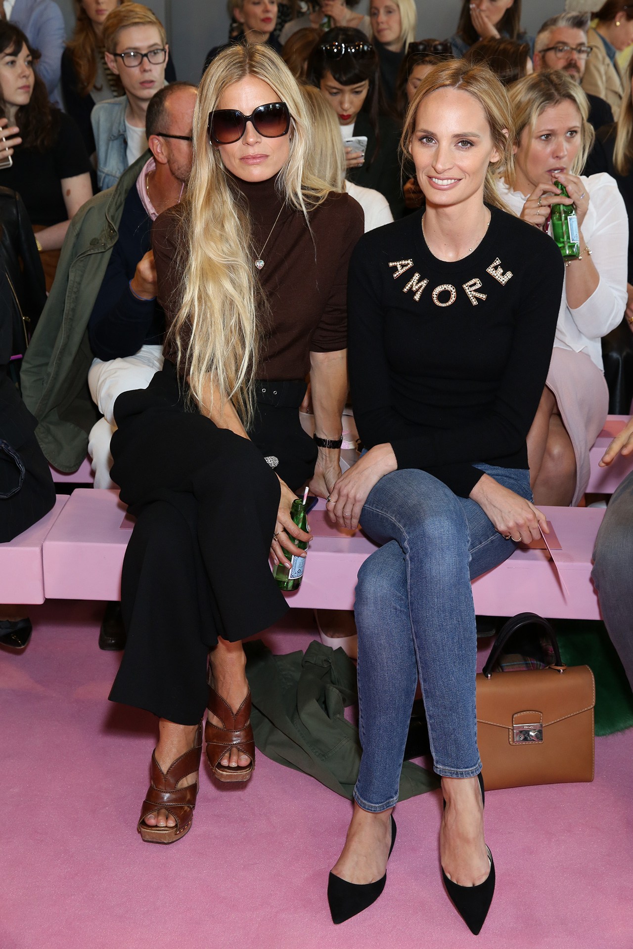 How are those seated further back ever going to be seen behind Laura’s huge sunglasses? Whoever said you should never wear necklaces with a poloneck has been here proven wrong, and Lauren Santo Domingo keeps it casual but chic in skinnies, black pointy flats and black top.