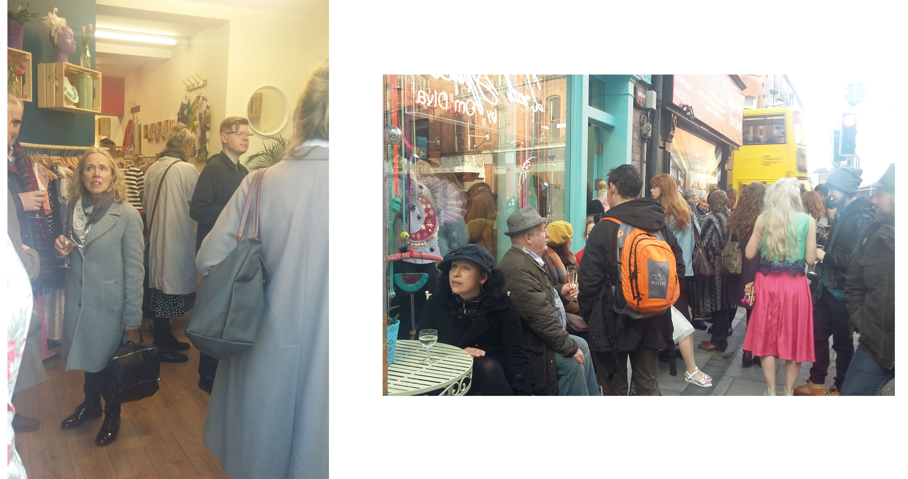 The shop launched last Thursday, April 14th, where the three separate rooms swelled with well-wishers and buyers, bubbles in one hand and a chocolate covered marshmallow in the other, with their eyes on a unique piece of clothing or jewelry.