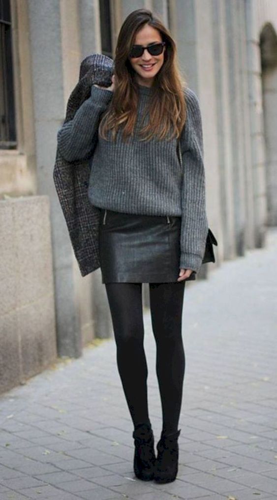 My favourite way to wear black tights is with a mini skirt – the kind of skirt that would be a little too risqué to wear without tights (or, indeed, with nudes) – and sky-high boots.