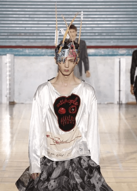 Kronthaler also showed at LFWM, a painfully cool and eccentric parade that featured both male and female models in an array of colourful crowns, embroidery and woollen balaclavas. If David and Victoria are polished, controlled chic Viv and Andreas are their hectic, explosive equivalents.
